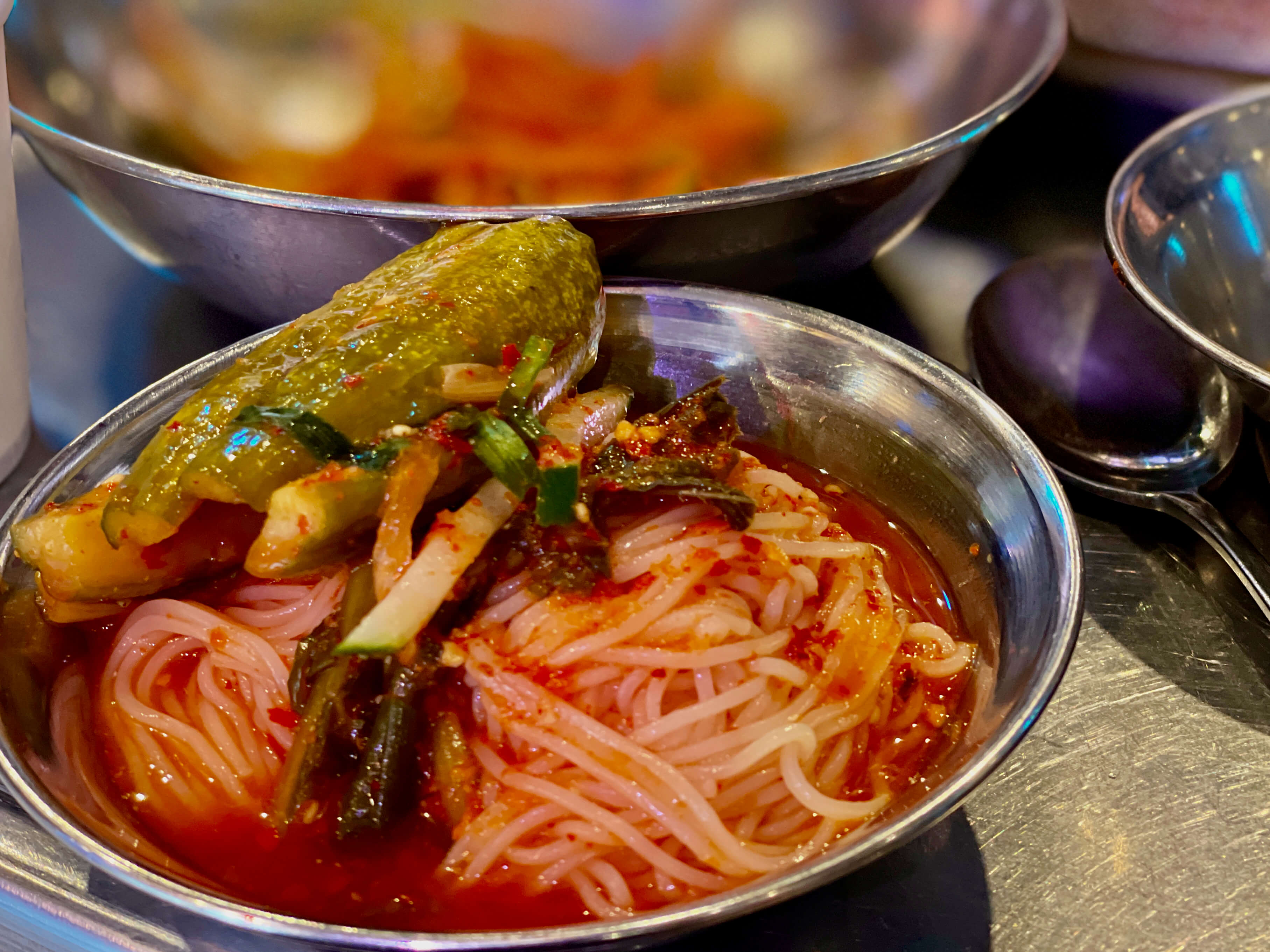 고기 말고 시킨 사이드는 냉열무국수 입니다.